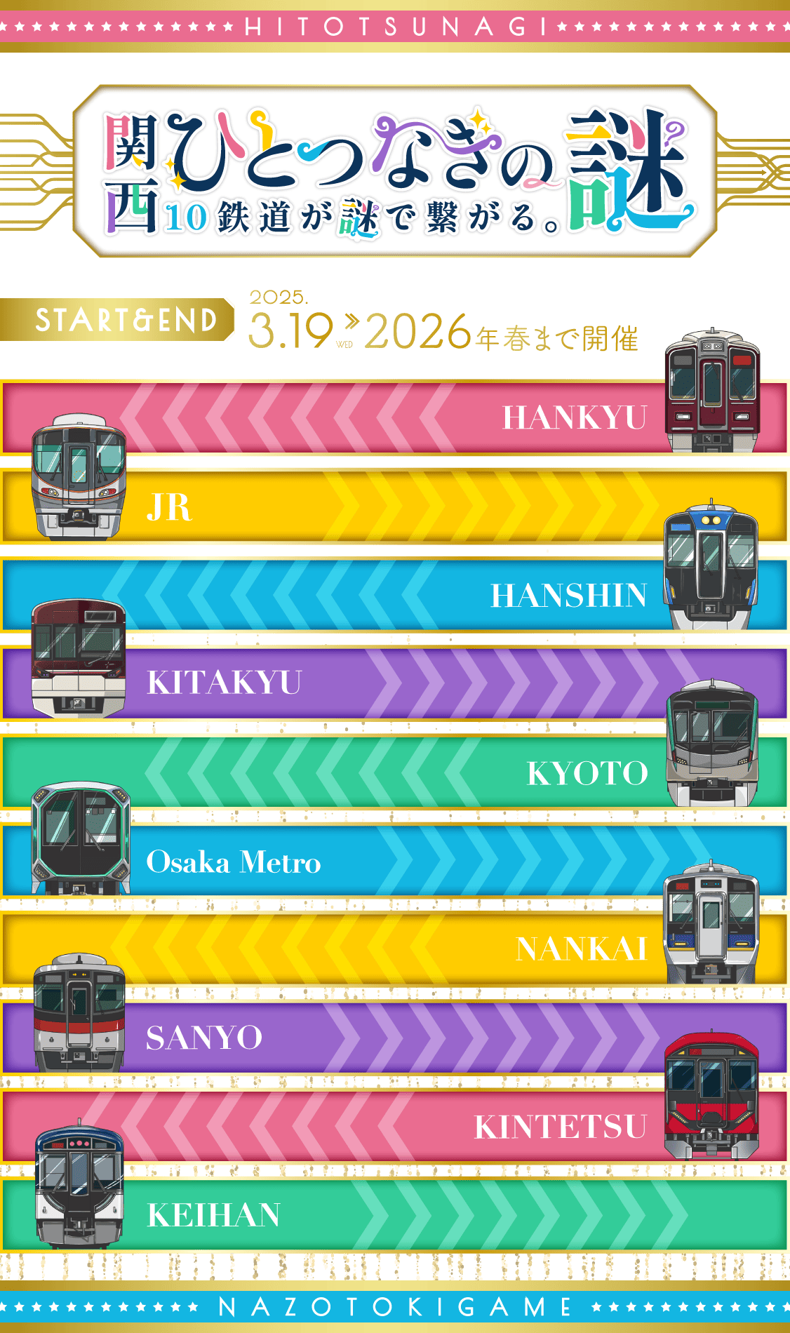 日本国内にお住まいの方で、関西ひとつなぎの謎 エクストラステージをクリアされた方(同一家族様でも各鉄道ナゾのキットを人数分購入された方は対象です)