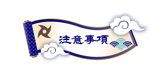 - ゲーム参加中に万が一、事件、事故、盗難などが起こっても主催者は一切責任を負いかねます。十分にお気をつけてご参加ください。
