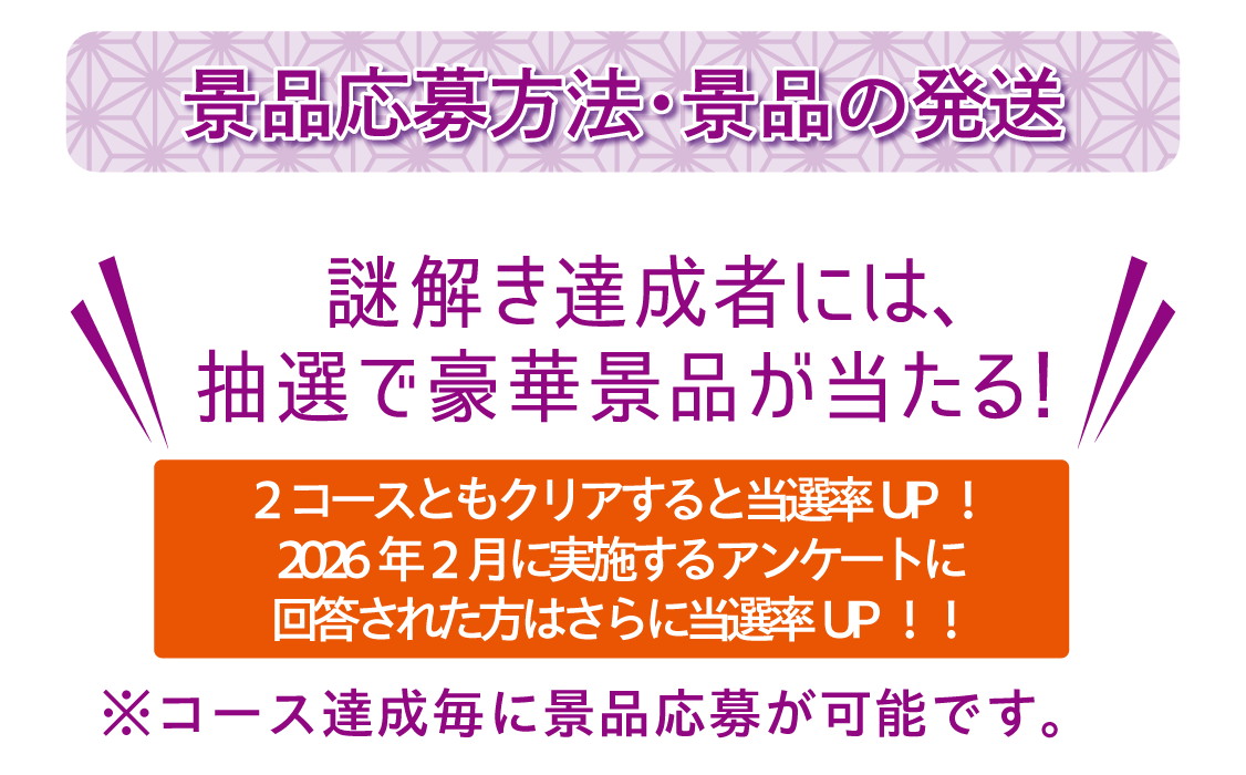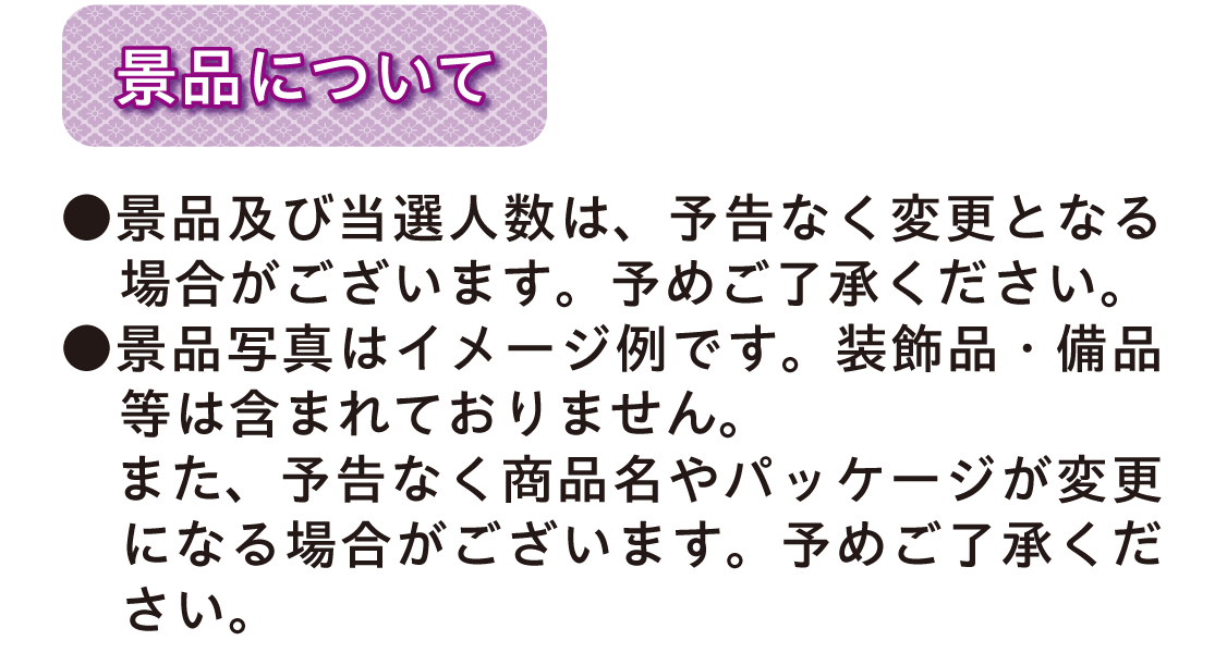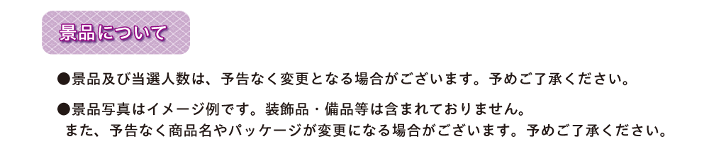 - 景品応募の期間は、予告なく変更・中止・終了する場合がございます。