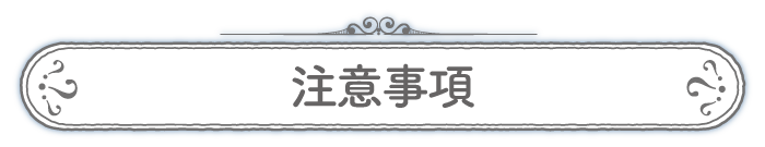 - ゲーム参加中に万が一、事件、事故、盗難などが発生した場合でも主催者は一切責任を負いかねます。